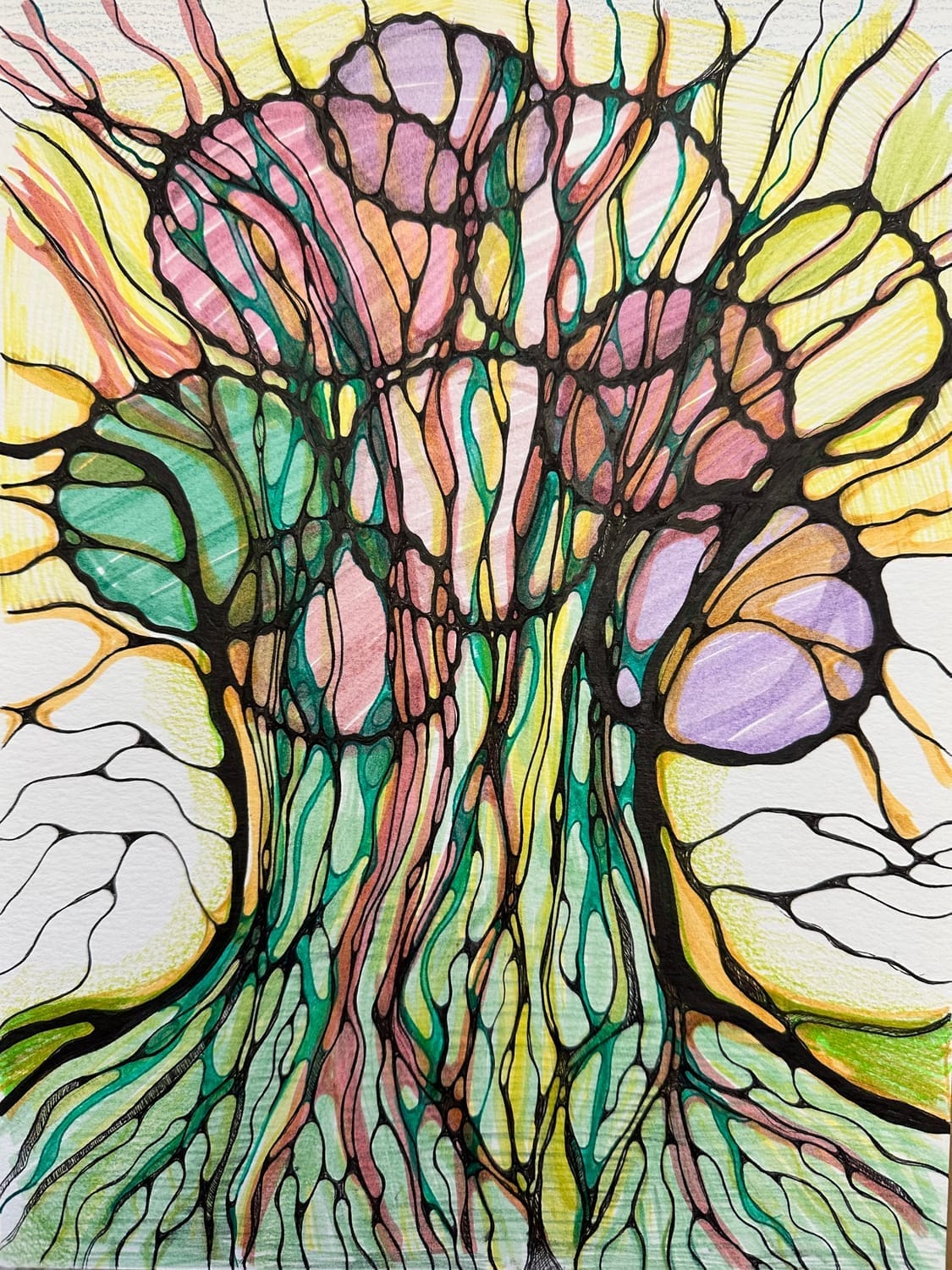 The moment my tree's trunk took shape, I felt two warm, pulsing spheres of energy in my chest and throat. I chose colors intuitively, my hand knowing just what to do.